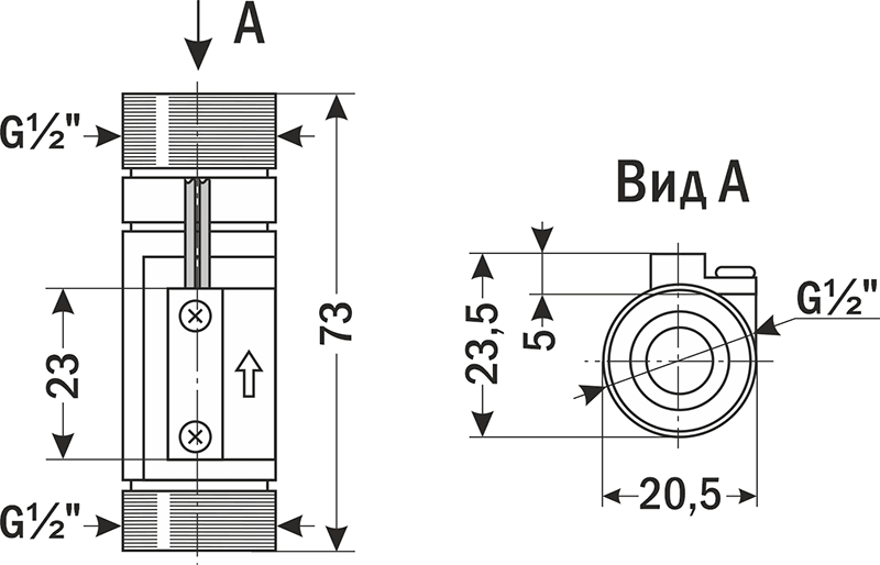 - Для корректной работы датчика направление потока жидкости должно совпадать с направлением стрелки на корпусе